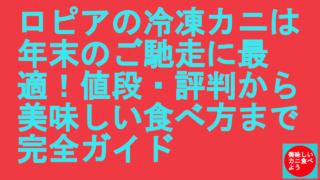 カニ販売 ロピアの冷凍カニは年末のご馳走に最適!値段・評判から美味しい食べ方まで完全ガイド ロピアの冷凍カニは買うべき?この記事では、驚きの価格で人気のボイルズワイガニや生ズワイガニの値段、品質に関するリアルな口コミ・評判を徹底調査。失敗しない選び方から、解凍方法、カニ鍋や焼きガニなどの絶品レシピまで、ロピアの冷凍カニを120%楽しむための情報を凝縮しました 2026.01.01 カニ販売